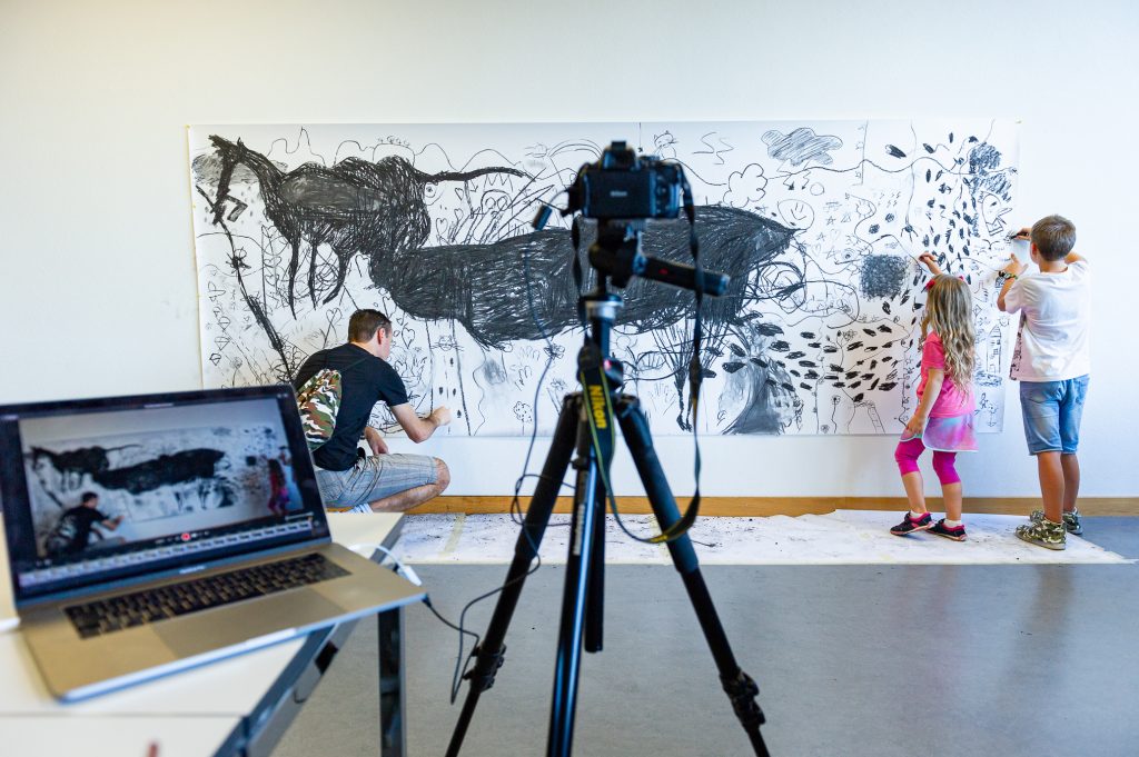 Die Kinder bauten begeistert Fantasiewesen, die dann dank eines Elektromotors zitternd davon wanderten. Sie konstruierten auf einer Treppe im Gebäude eine grosse Kugelbahn oder versuchten in einem Experiment, mit einer Pipette und einem Stück Löschpapier, Farbstoffe voneinander zu trennen.
